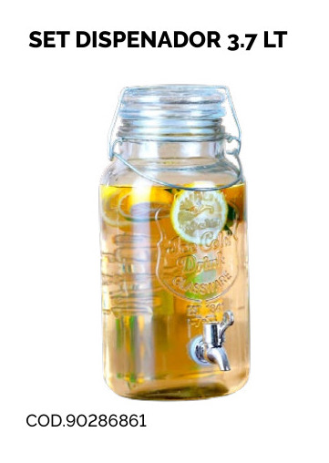 SET DISPENADOR DE BEBIDAS 3.7 LT + 4 FRASCOS 450CC