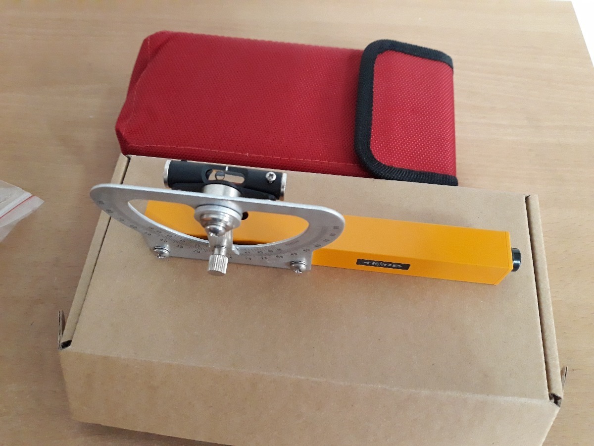 El radio del arco esta graduado en grados de 0° a 90° en ambas direcciones.