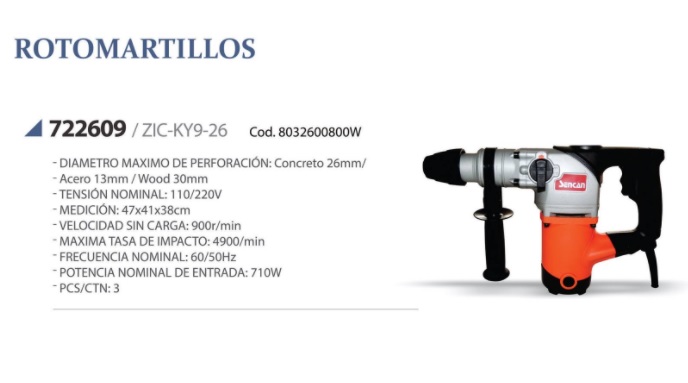 ROTOMARTILLO 710 W – > MARCA: SENCAN -> MODELO: 722609 ; REALIZAMOS ENVIOS A TODO EL PERU SENCAN ENTREGA INMEDIATA