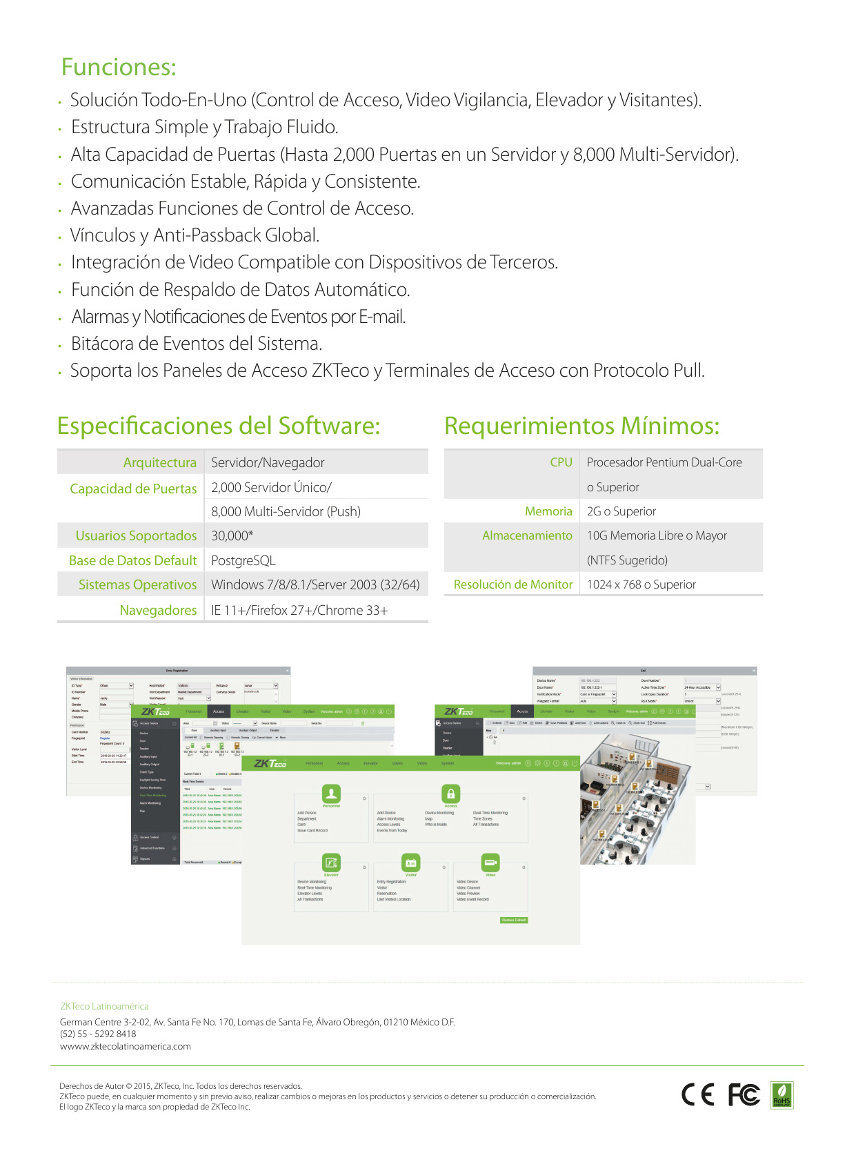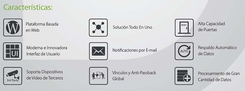Es un sistema de gestión basado en web que permite configurar las funciones de control de acceso, administrar paneles de control de acceso vía red y gestionar personal en un ambiente unificado. El sistema de control de acceso establece niveles y el horario de apertura de puerta para los usuarios registrados.