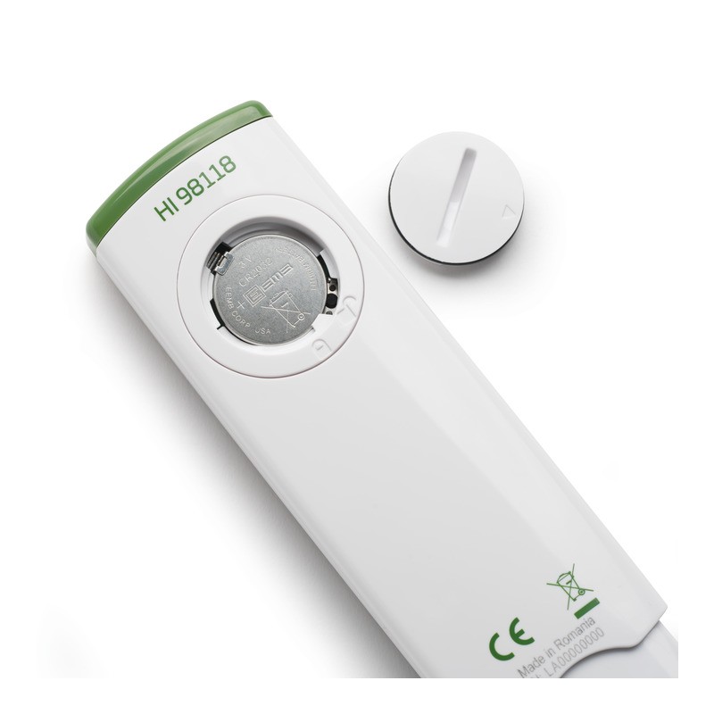 El HI98118 viene con 3 sobres de calibración Quick Cal HI50036 (20 mL), sobre de solución de limpieza de uso general HI700601 (20 mL) (1), (1) batería CR2032, manual de instrucciones y certificado de calidad.