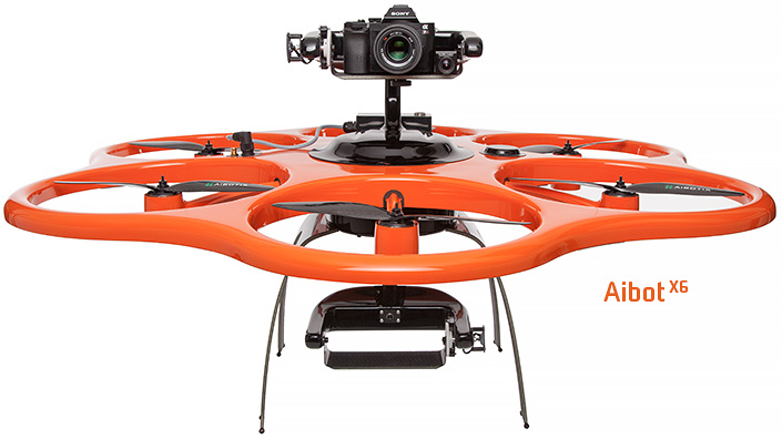 Aibot X6 es un hexacopter de vuelo autónomo, diseñado específicamente para tareas exigentes en topografía, inspección industrial, agricultura y silvicultura. Equipado con un alto nivel de inteligencia artificial, este UAV alcanza cualquier objetivo y puede crear de forma independiente imágenes y videos de alta resolución. Una característica inigualable del Aibot X6 ofrece la posibilidad de adaptar diversos tipos de sensores, como sensores hiper-y multiespectrales, sensores infrarrojos y térmicos, y sensores para otras misiones específicas de la industria.