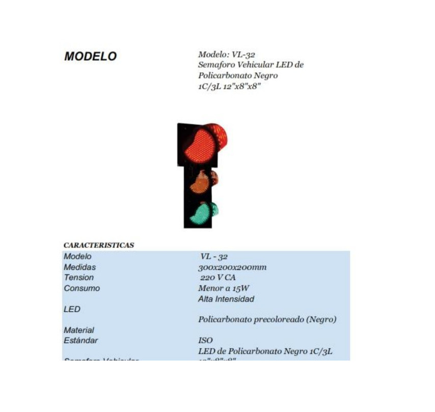 SEMAFORO VEHICULAR MARCA: CHEVYLIGHT MODELO: VL – 32