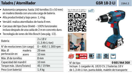 TALADROS MARCA: BOSCH MODELO: GSR 18-2-LI