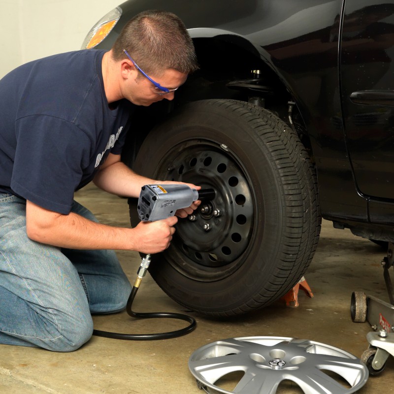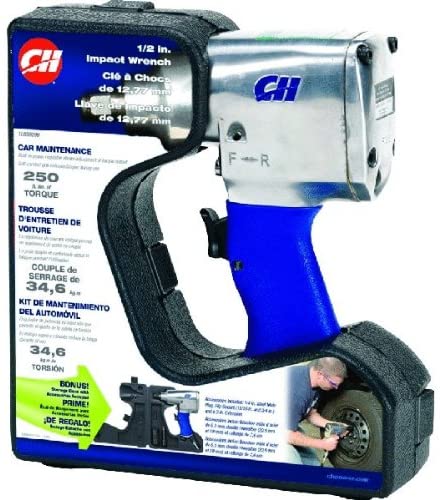 Cambie los neumáticos más rápido y más fácil con esta llave de impacto de aire Campbell Hausfeld TL050201AV de 1/2 pulg. Cuenta con un sistema de impacto de tipo balancín diseñado para proyectos de bricolaje y aplicaciones de uso general. El material suave recubre el agarre para una mayor comodidad de 250 pies-lbs. del par máximo creado por la llave para instalar tuercas y pernos. Un botón de avance / retroceso del interruptor permite el uso con una sola mano, mientras que el regulador incorporado ajusta la salida de par.