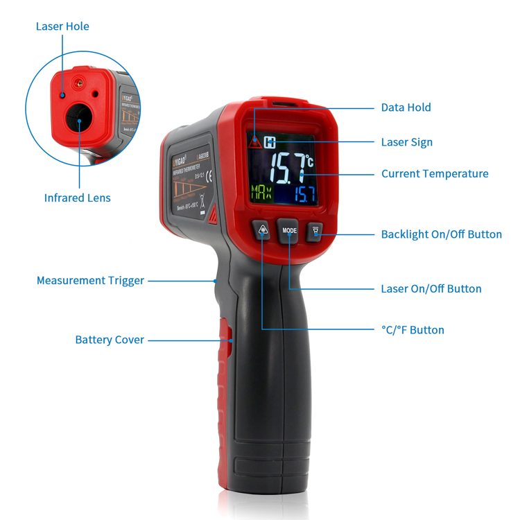 Termómetro infrarrojo UA6380B de nueve puntos (UA6380A es un punto)-50 a 550 °C colorida pantalla LCD sobrecalentamiento