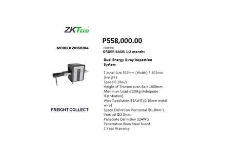DISPOSITIVO DE RAYOS X MARCA: ZKTECO MODELO: ZKX5030A