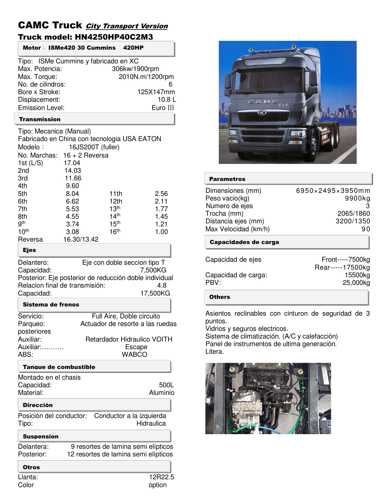 TRACTOCAMION – > MARCA: CAMC -> MODELO: HN4250HP40C2M3 ; REALIZAMOS ENVIOS A TODO EL PERU CAMC ENTREGA INMEDIATA