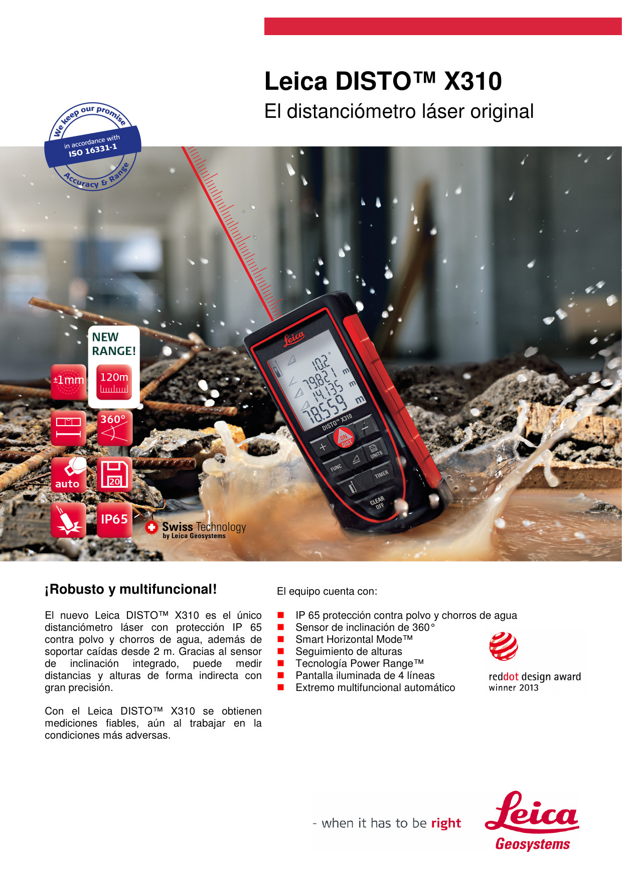 Con el dispositivo, está seguro de obtener la longitud de las distancias con una precisión milimétrica fraccionaria de manera constante.