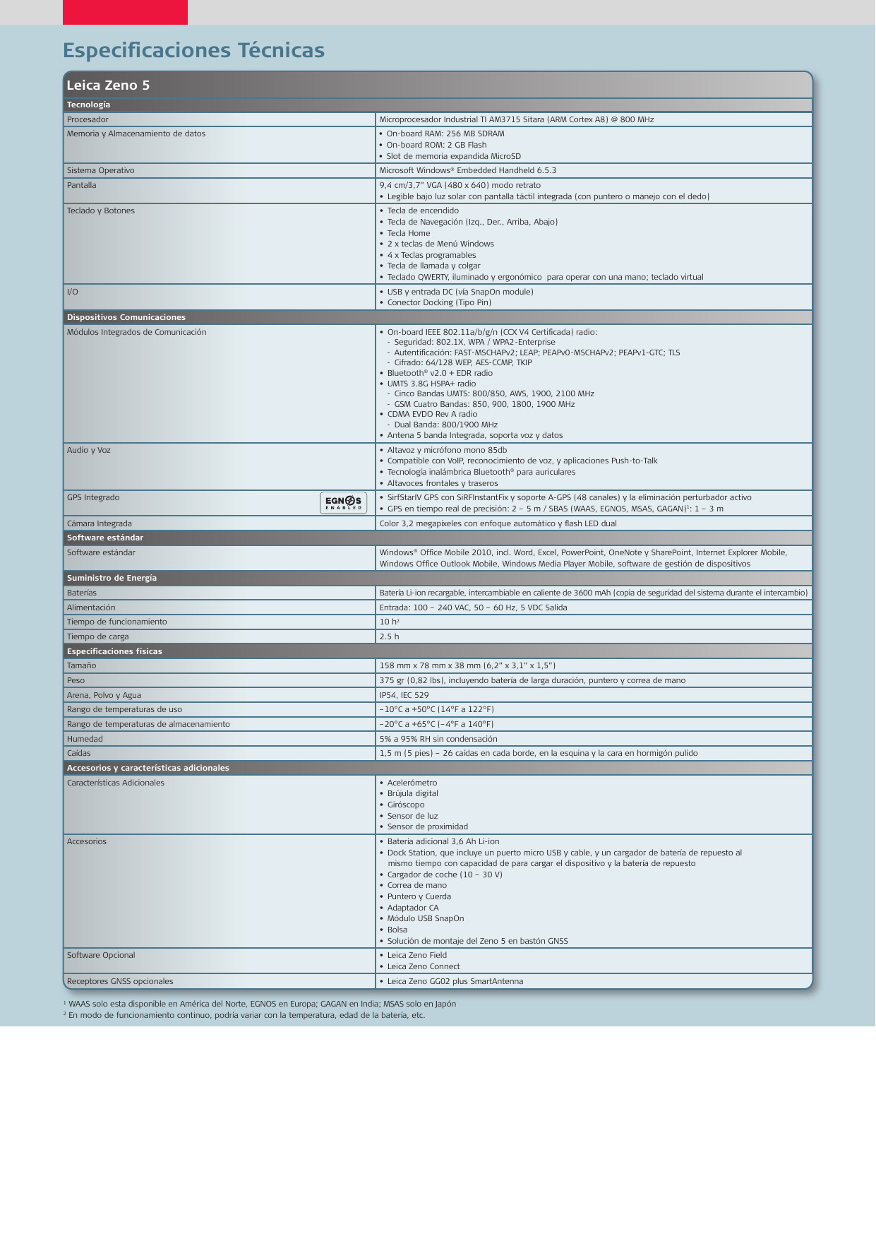 El Leica Zeno 5 integra toda la funcionalidad en un dispositivo ergonómico, lo que lo convierte en una potente y robusta computadora de mano GPS con funcionalidad completa para el teléfono. Con un procesador de alta velocidad, el Zeno 5 ofrece un rendimiento sin compromisos, totalmente integrado en la serie Zeno GIS.
