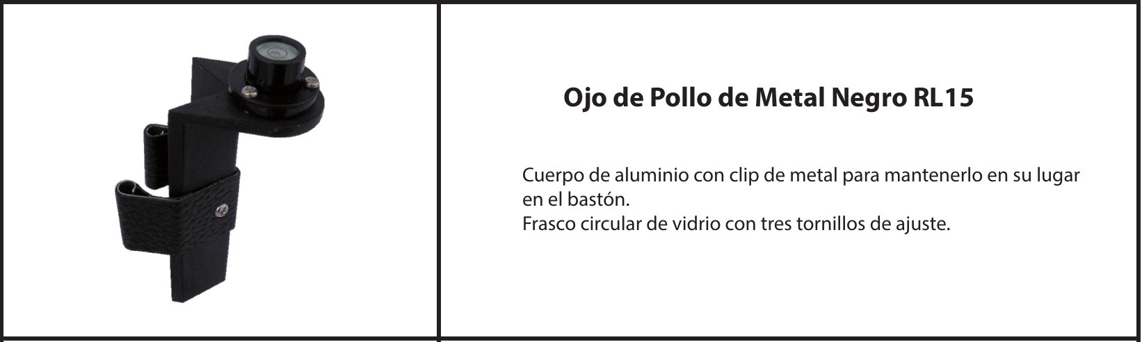 RL15 Rod Level, La niveleta angular está fabricada íntegramente con metal de alta resistencia. Con tres tornillos de ajuste, esta niveleta puede ser ajustada o recalibrada todas las veces que sea necesario