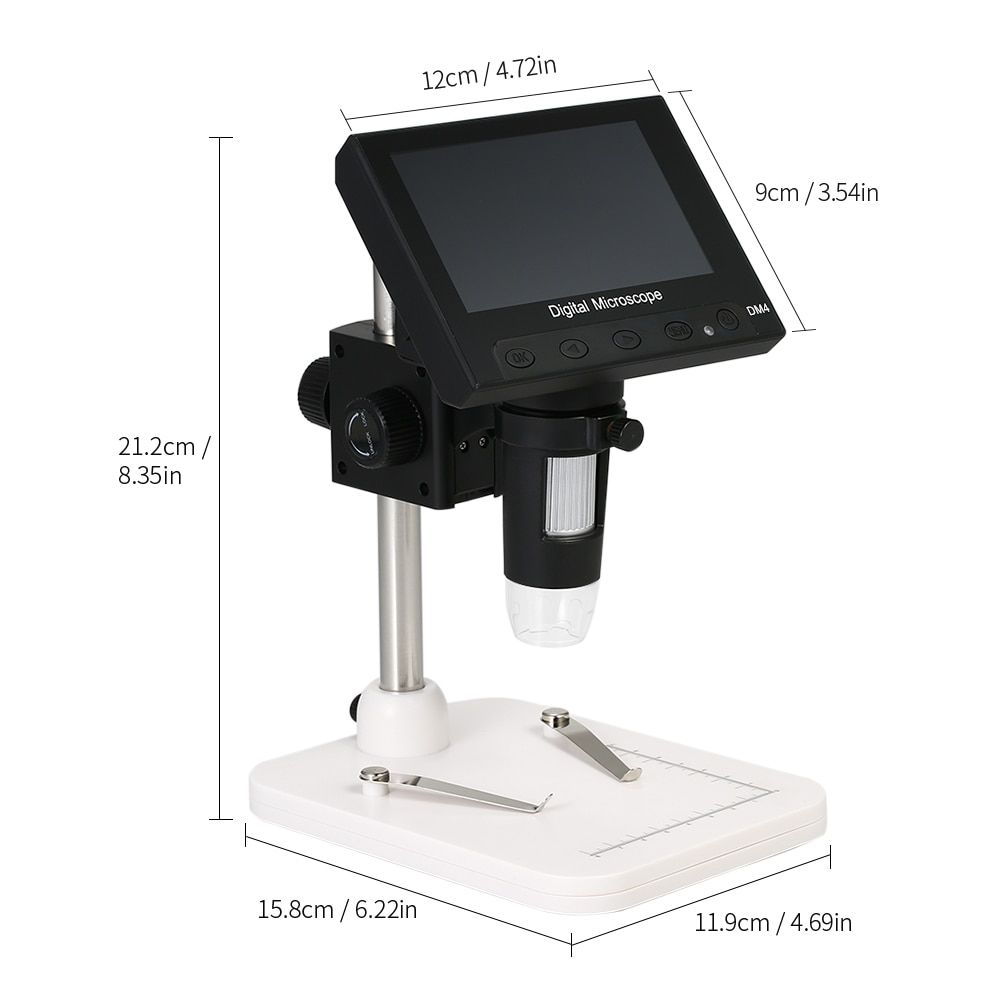 Este microscopio digital con pantalla LCD de 4,3 pulgadas, aumento de 1000X y 8 LED blancos de alto brillo ajustables. Le ayudará a ver y analizar pequeños objetos en detalles microscópicos. Ven con un soporte para ayudar a sostener el microscopio.