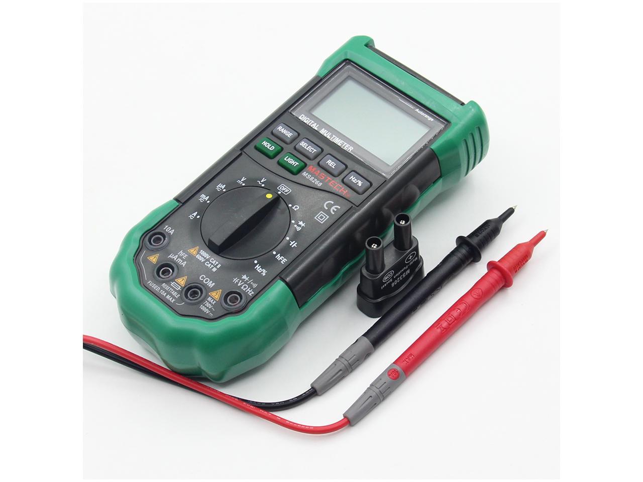 Este MS8268 es un multímetro digital con todas las funciones. Es capaz de la mayoría de las funciones estándar, incluyendo voltaje y corriente CA / CC, resistencia, capacitancia, frecuencia, temperatura y más. También está repleto de muchas características agradables, como luz de fondo, retención de datos, restablecer fusible de mesa. No importa si es un profesional o simplemente un aficionado al bricolaje, esta es una herramienta excelente y asequible para su uso diario.