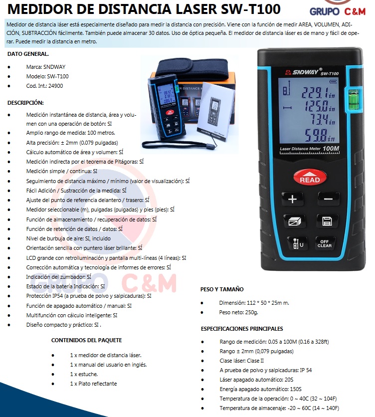 DISTANCIOMETRO 100 M – > MARCA: SNDWAY -> MODELO: SW-T100 ; REALIZAMOS ENVIOS A TODO EL PERU sndway ENTREGA INMEDIATA