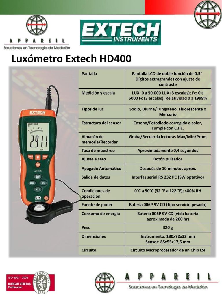 LUXOMETRO 40 KLUX – > MARCA: EXTECH -> MODELO: HD400 ; REALIZAMOS ENVIOS A TODO EL PERU EXTECH ENTREGA INMEDIATA