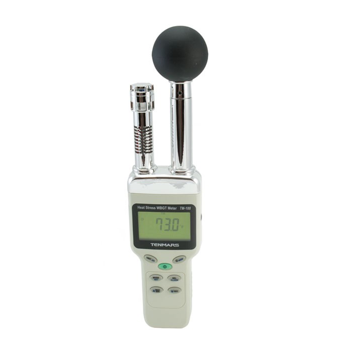 El medidor WBGT de estrés térmico Tenmars TM-188 tiene una respuesta rápida que produce mediciones precisas de los efectos de la temperatura, la humedad y la luz solar directa o radiante.