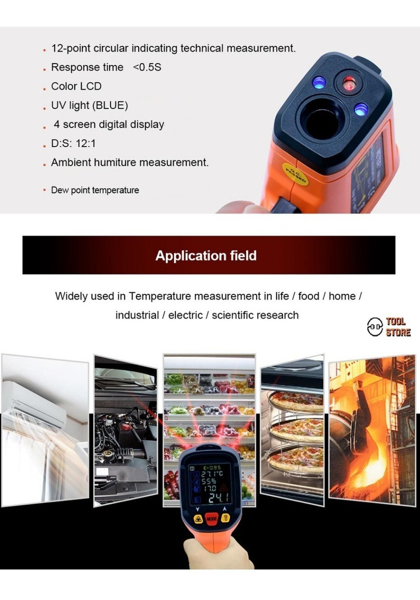 El termómetro industrial infrarrojo digital sin contacto es un dispositivo fiable utilizado para medir la temperatura superficial de un objeto con seguridad y rápidamente. Con muchas otras funciones útiles en el ámbito industrial y domestico, este artículo es más práctico que el termómetro infrarrojo común,
