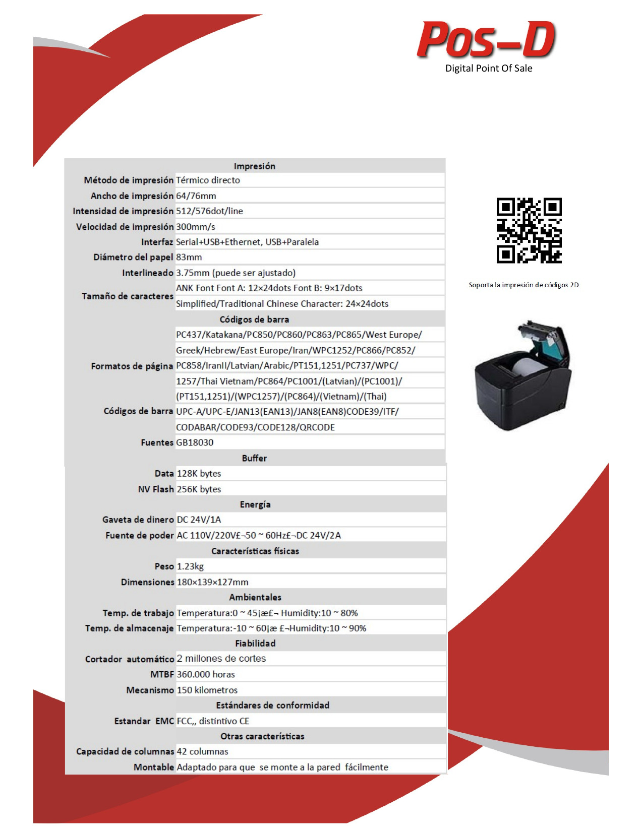 – Soporta impresión de códigos de barra y códigos