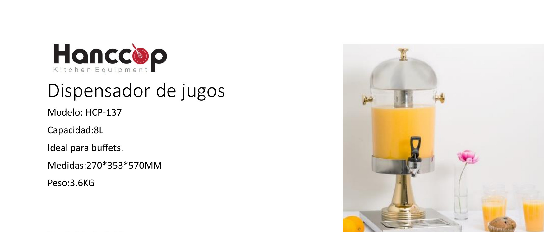 DISPENSADOR DE JUGOS – > MARCA: HANCCOP -> MODELO: HCP-137 ; REALIZAMOS ENVIOS A TODO EL PERU HANCCOP ENTREGA INMEDIATA