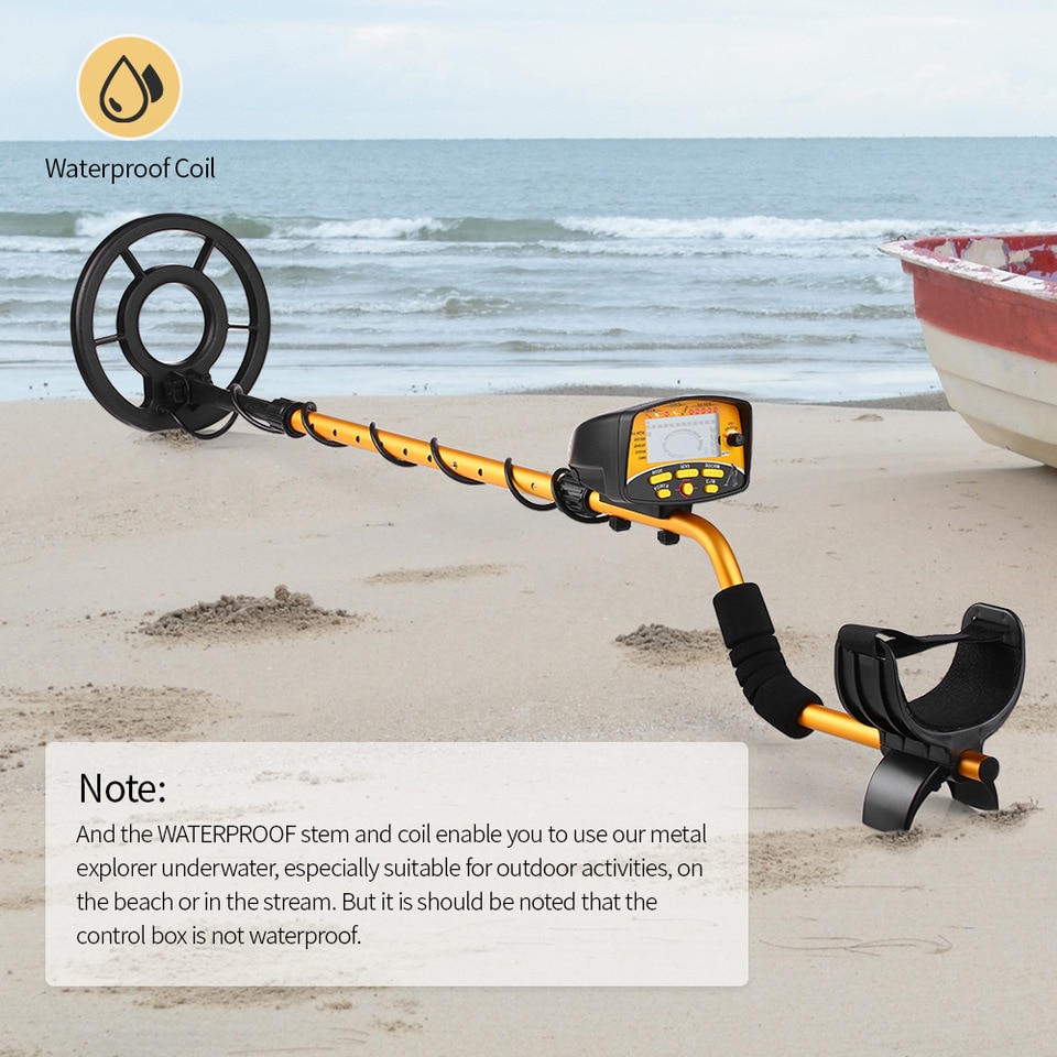 Diseño a prueba de agua: el vástago y la bobina impermeables te permiten usar nuestro explorador de metal bajo el agua, especialmente adecuado para actividades al aire libre, en la playa o en la corriente. Pero hay que tener en cuenta que la caja de control no es resistente al agua.