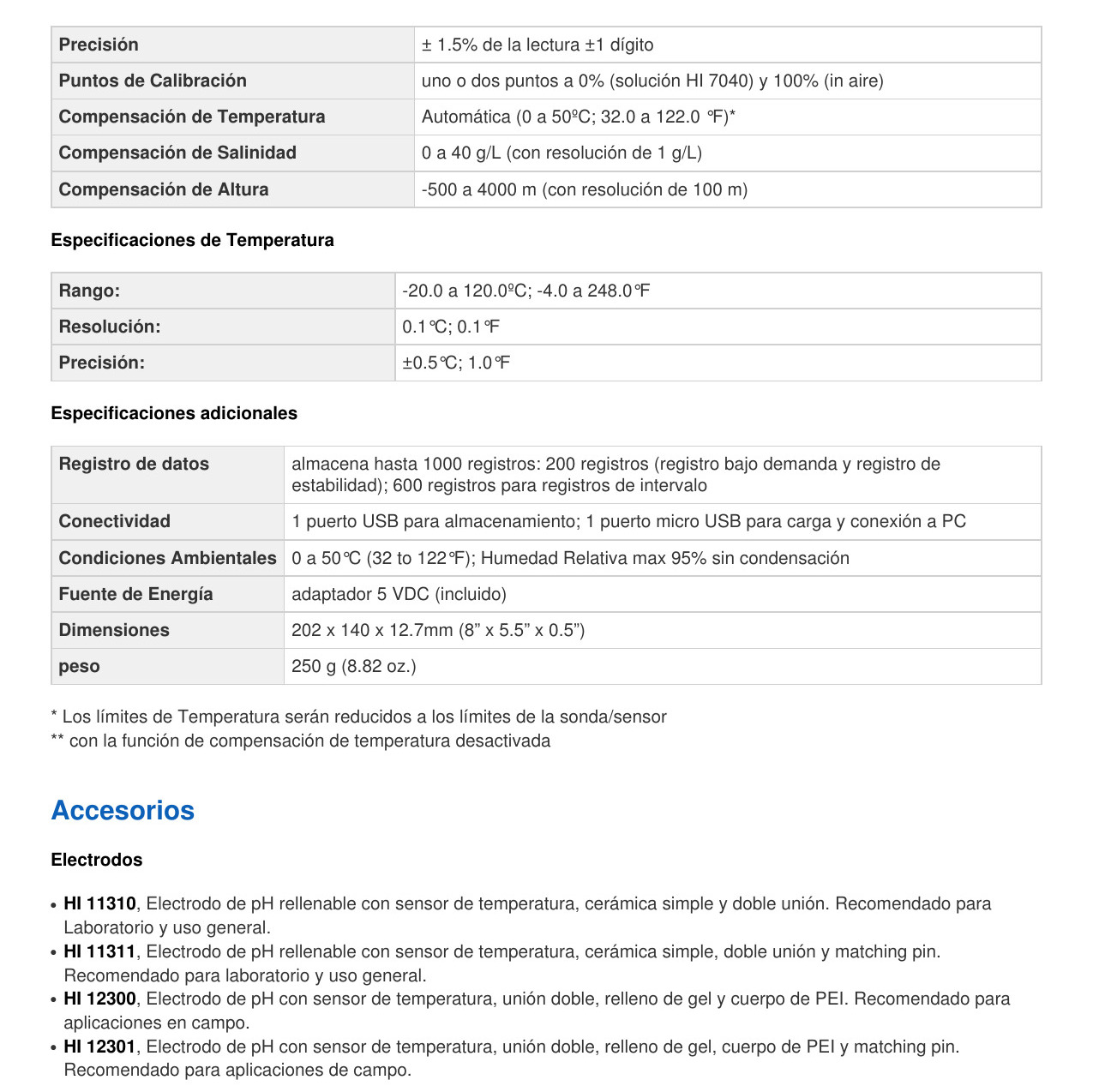 pH Precisión (@ 25ºC / 77ºF) ± 0,2 mV, ± 0,01 pH, ± 0,002 pH