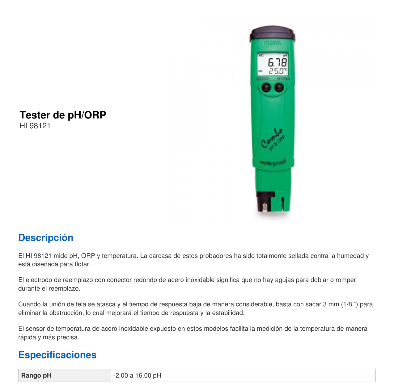 MEDIDOR DE ORP – > MARCA: HANNA -> MODELO: HI98121 ; REALIZAMOS ENVIOS A TODO EL PERU HANNA ENTREGA INMEDIATA
