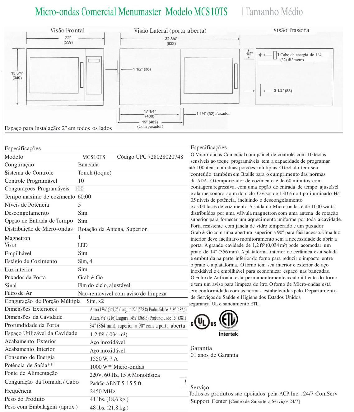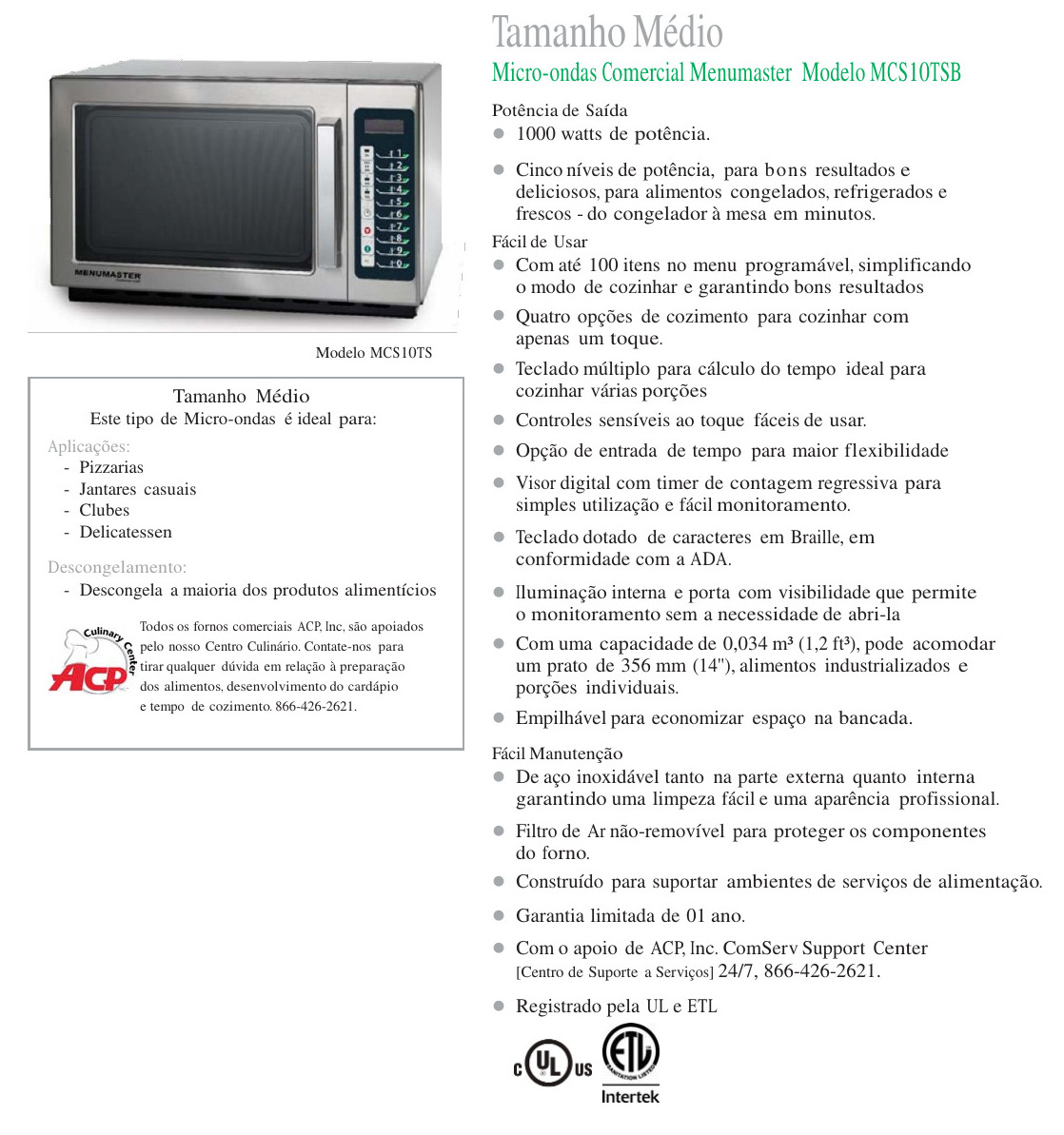 Todas estas características hacen del MCS10TSB el microondas industrial más confiable disponible en el mercado.